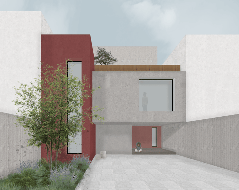 Este proyecto consistió en la rehabilitación de una casa deshabitada y deteriorada de los años 80, transformándola en un edificio de usos mixtos. La planta baja se destinó a espacios comerciales de acceso público, mientras que los niveles intermedios albergan consultorios y locales, y el último nivel se reserva para dos departamentos residenciales. Inspirados en la identidad original de la vivienda, utilizamos el ladrillo como material principal para los muros y el diseño de una celosía distintiva que envuelve el edificio, creando un juego de luz y sombra. Las ventanas alargadas, reminiscencia de la arquitectura del siglo pasado, se reinterpretaron con un toque moderno. Los distintos volúmenes del edificio responden tanto a criterios estructurales como estéticos, dotando al conjunto de dinamismo y permitiéndole sobresalir en su entorno sin perder conexión con el contexto urbano.