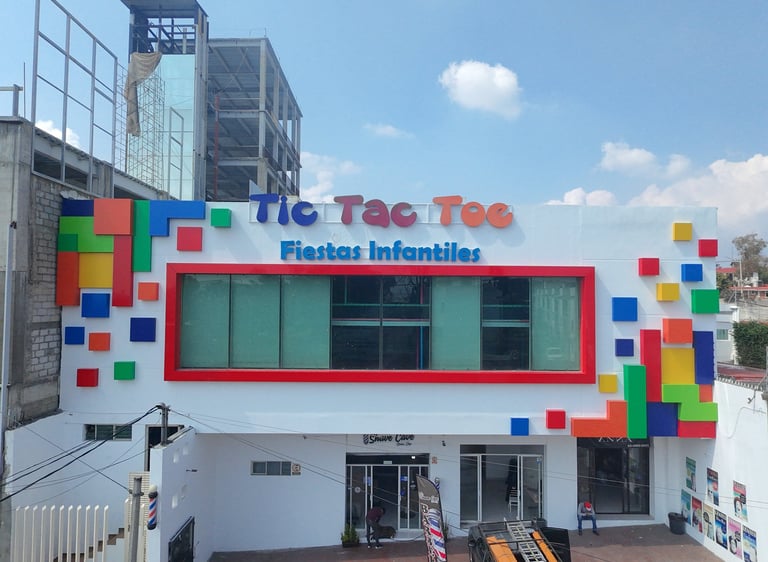 En colaboración con los clientes, desarrollamos una fachada vibrante y llamativa para el salon de fiestas infantiles "Tic Tac Toe". Utilizamos una paleta de colores intensos y un diseño modular en relieve, creando profundidad y dinamismo en cada pieza. Este enfoque le da identidad al lugar y a su vez capta la atención de los transeúntes, invitándolos a conocer un espacio pensado para la diversión y la creatividad. Cada detalle fue cuidadosamente diseñado para reflejar el espíritu lúdico y acogedor del centro, convirtiendo la fachada en un elemento distintivo y atractivo.